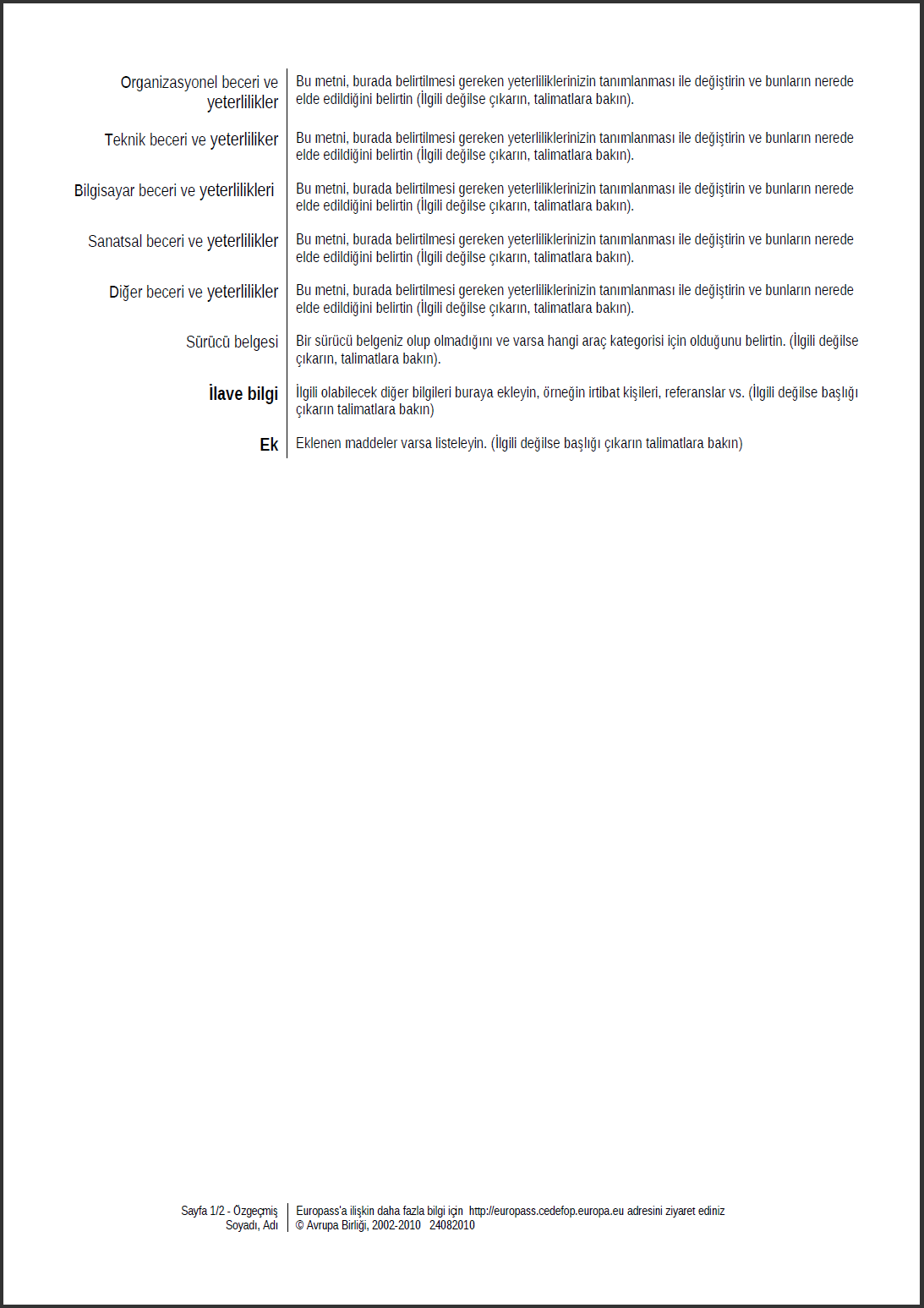 Avrupa Birliği Standartında CV Örneği