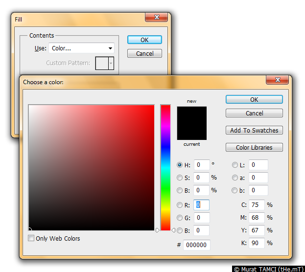 1. Klavyede SHIFT+F5 yapın ve Fill penceresini açın burada siyah rengi seçin ve OK düğmesine tıklayın