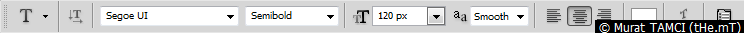 4. Horizontal type tool (Klavyede T) aracını seçin ve Segoe UI yazı-tipinde, semibold kalınlıkta, 120px boyutunda, beyaz renkte Fx yazın.