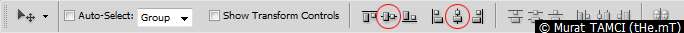 2. Fx yazı katmanını seçin ve Align vertical centers sonra da Align horizontal centers araçlarına tıklayın