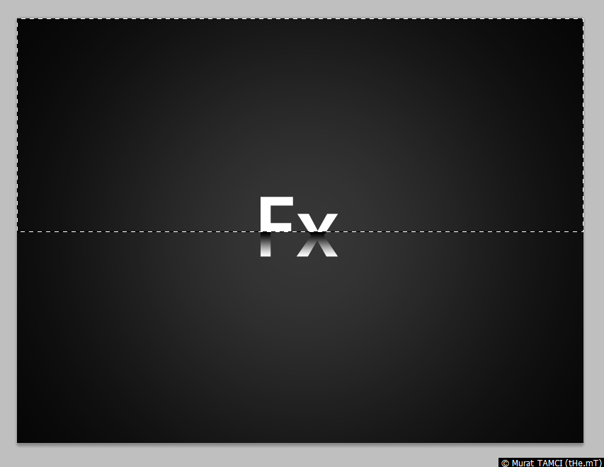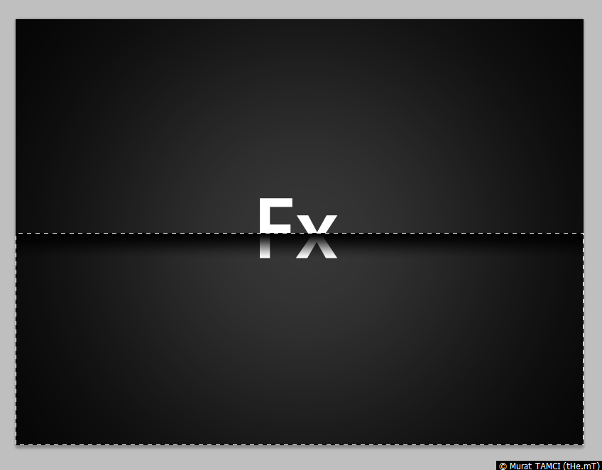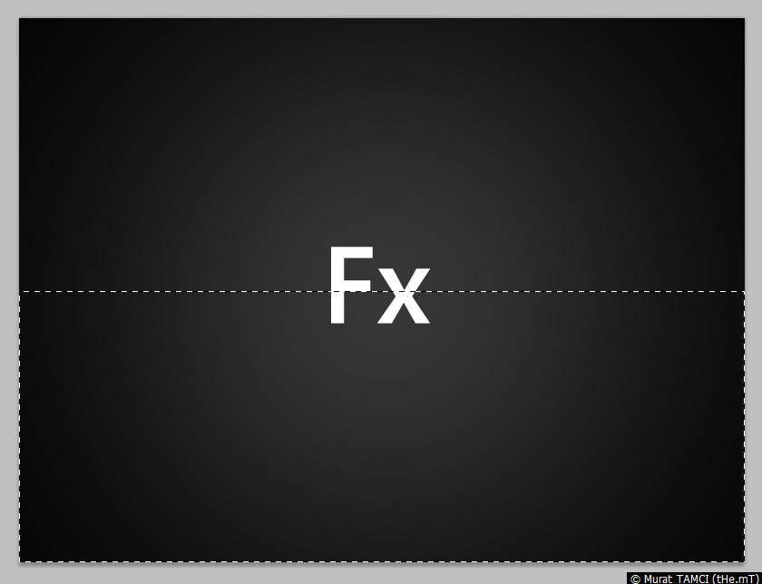 1. Rectangular marquee tool (Klavyede M) aracı ile Fx yazsının ortasından çalışma alanının tabanına kadar, yatay olarak çalışma alanını dolduracak şekilde seçim yapın