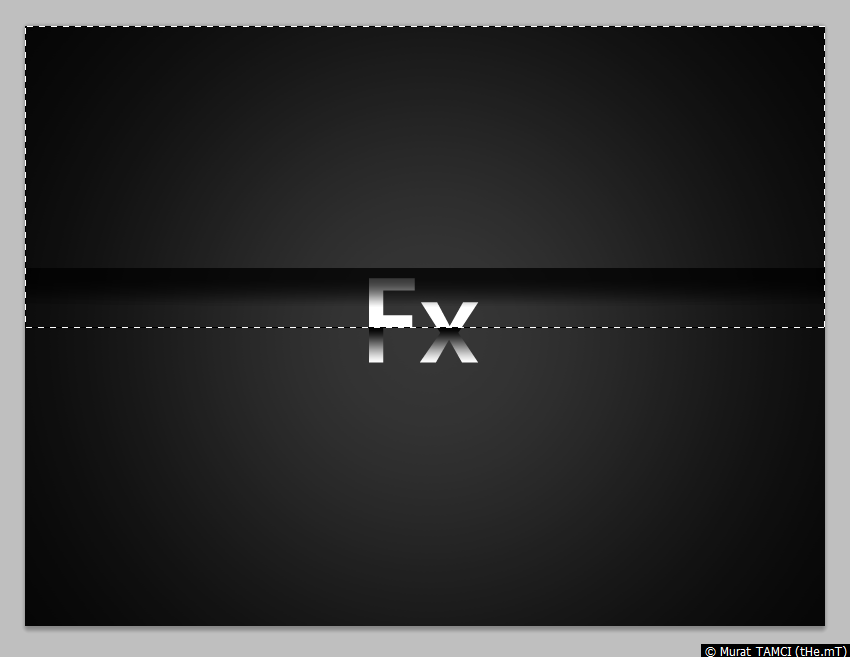 1. Rectangular marquee tool (Klavyede M) aracı ile çalışma alanının tavanından başlayan Fx yazsının ortasından biten, yatay olarak çalışma alanını dolduracak şekilde seçim yapın