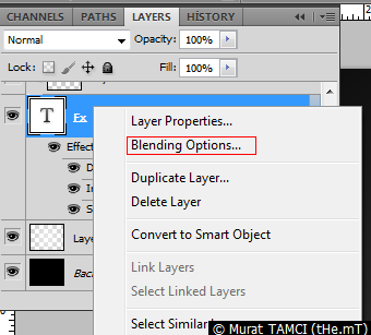 1. Açılan menüde Blending options... komutunu seçin