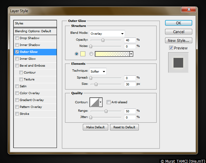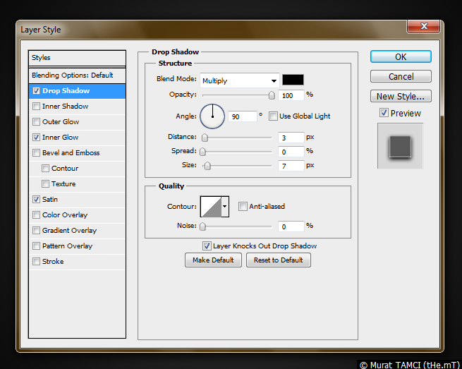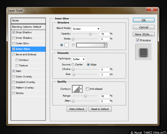 2. Katmanı üzerinde farenin sağına tıklayın ve açılan menüde Blending options... komutunu seçin ve aşağıdaki resimde bulunan ayarların hepsini yapın